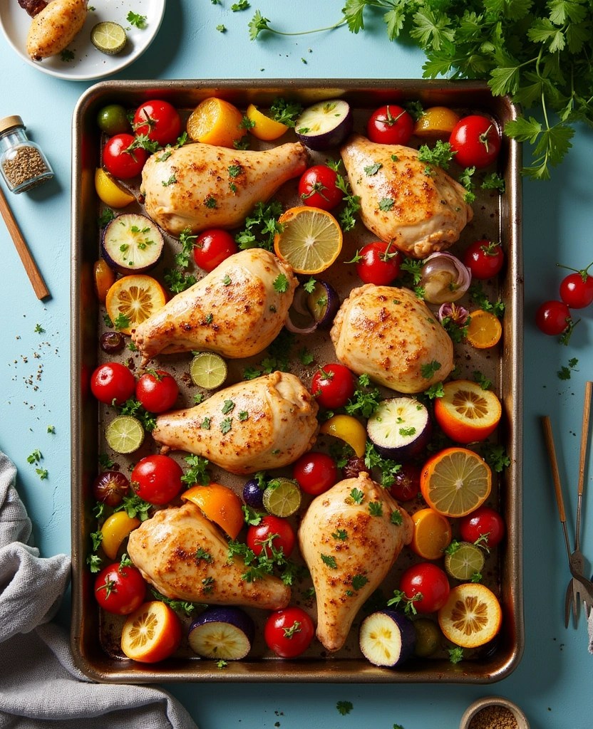 Combine your favorite proteins, veggies, and spices on a single baking sheet and roast them together for a flavorful and nutritious meal.
