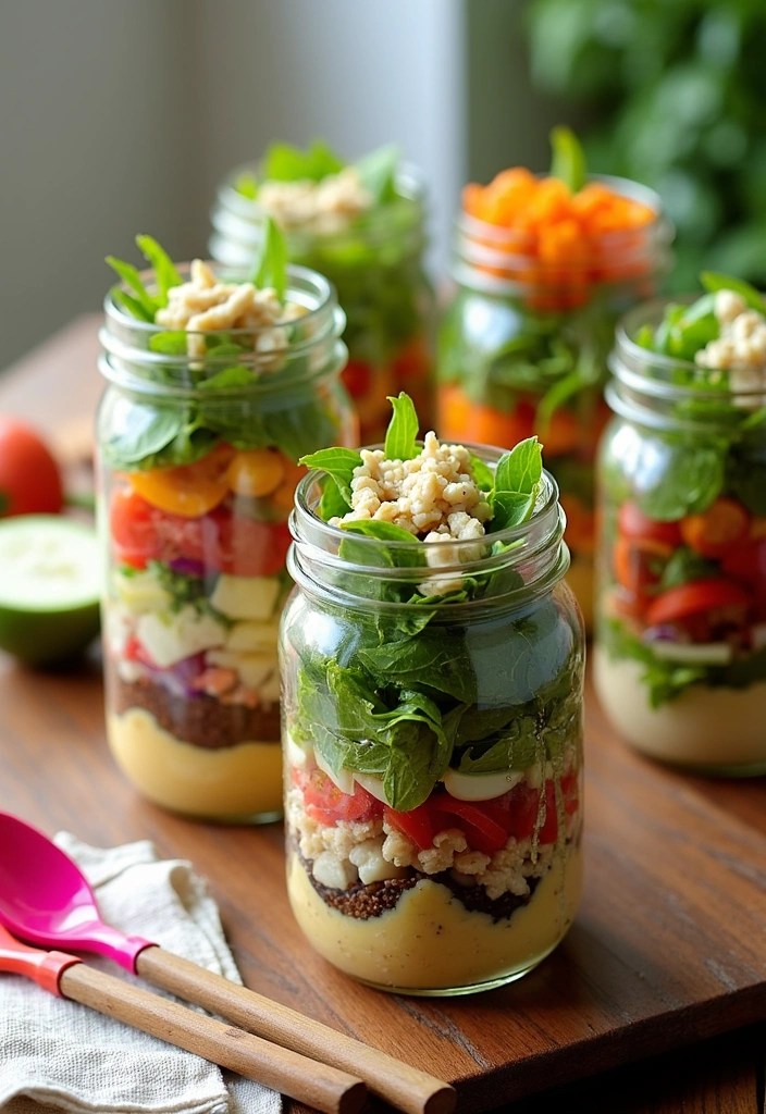 Mason jar salads are a trendy and practical way to enjoy healthy lunches on the go.